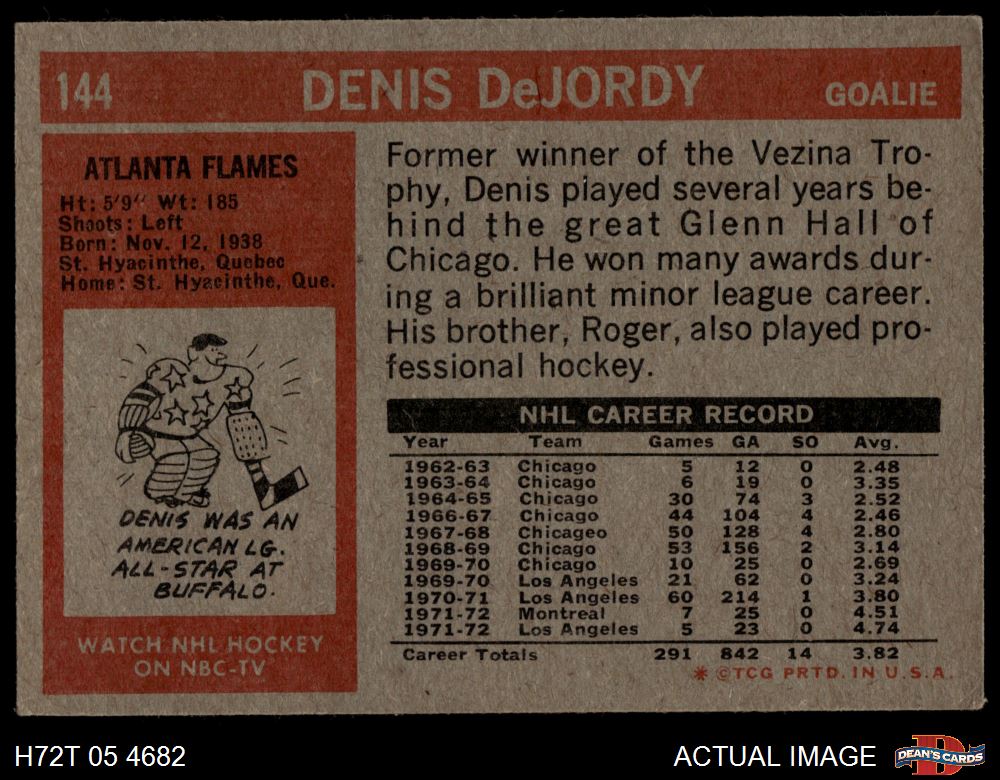 1972 Topps #144 Denis DeJordy 6 - EX/MT