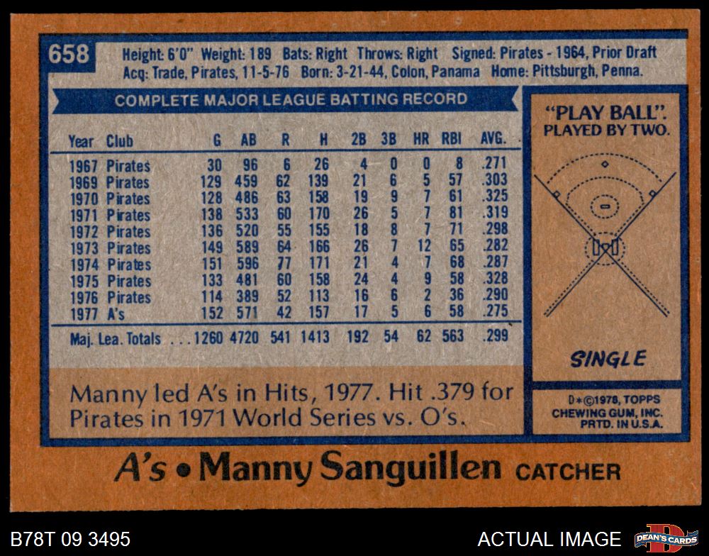 1978 Topps #658 Manny Sanguillen 5 - EX