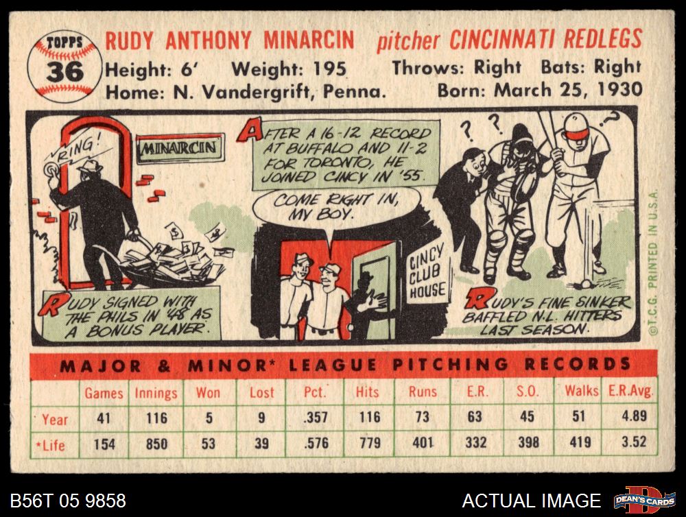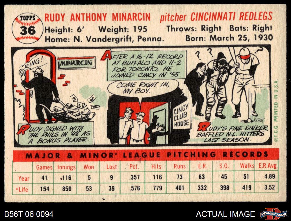 1956 Topps #36 Rudy Minarcin 4 - VG/EX