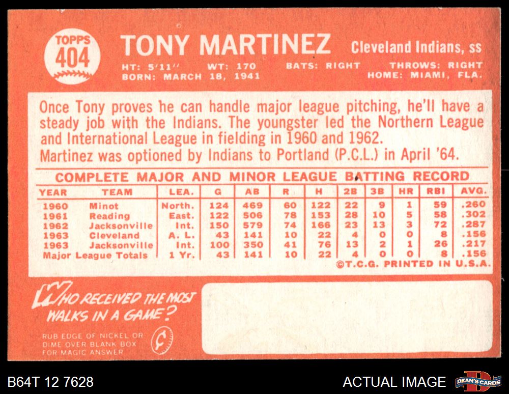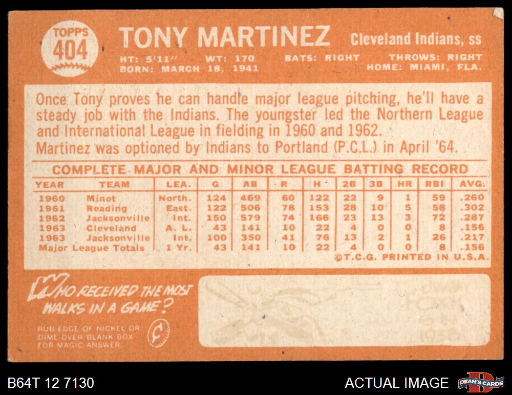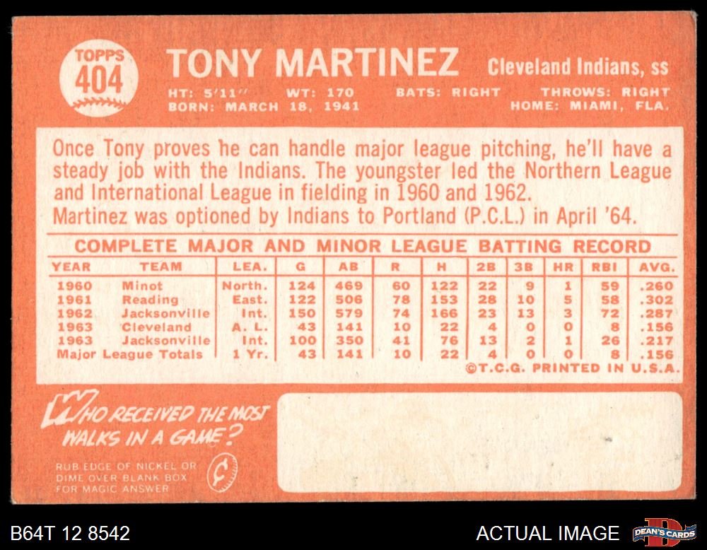 1964 Topps #404 Tony Martinez