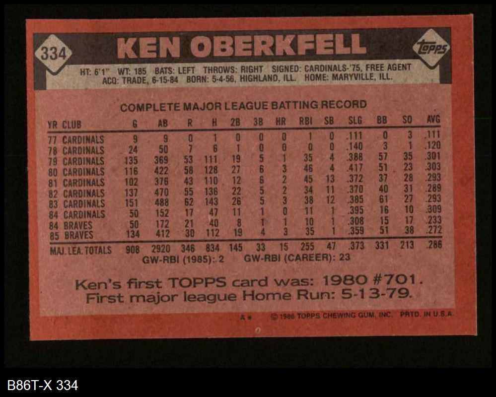1986 Topps Baseball Cards (6,195 available)1986 Topps Braves (134 available)