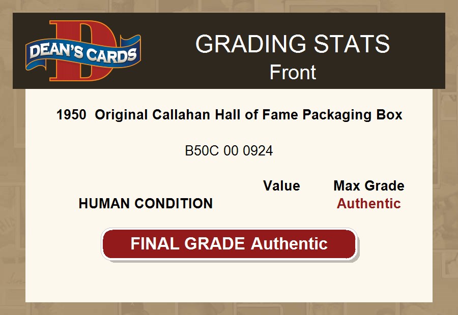 1950 Original Callahan Hall of Fame Packaging Box AUTHENTIC