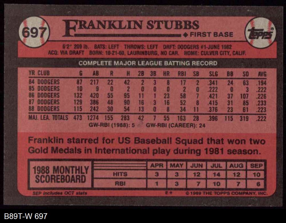 1989 Topps #697 Franklin Stubbs