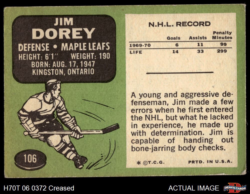 1970 Topps #106 Jim Dorey 2 - GOOD