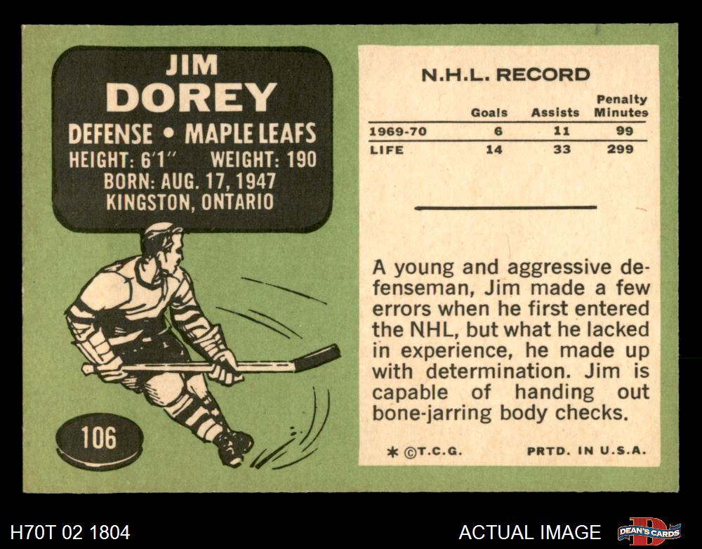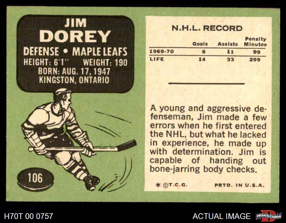 1970 Topps #106 Jim Dorey 5 - EX
