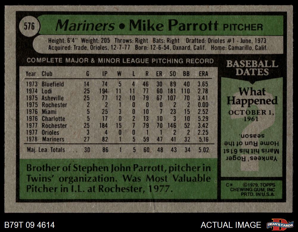 1979 Topps #576 Mike Parrott 4.5 - VG/EX+