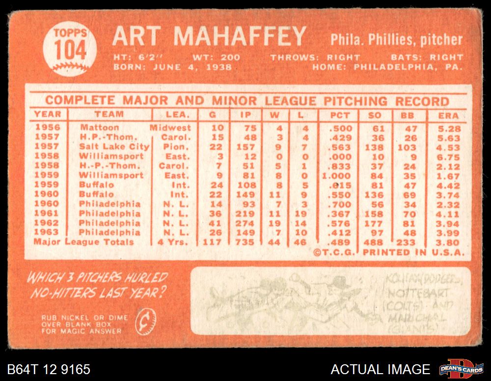 1964 Topps #104 Art Mahaffey 1 - POOR