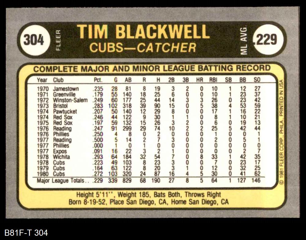 1981 Fleer #304 Tim Blackwell 8 - NM/MT