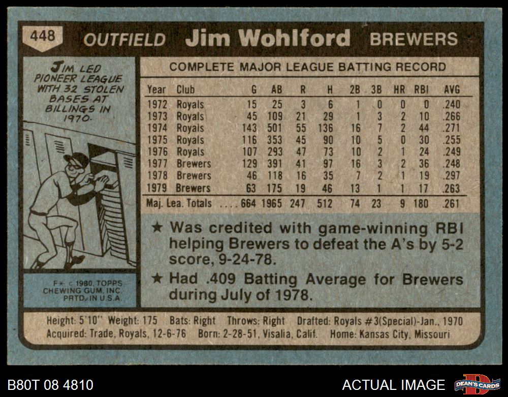 1980 Topps #448 Jim Wohlford