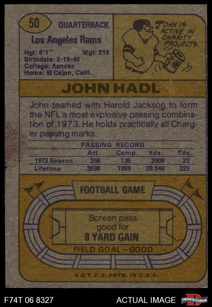 1974 Topps #50 ONE John Hadl 3 - VG