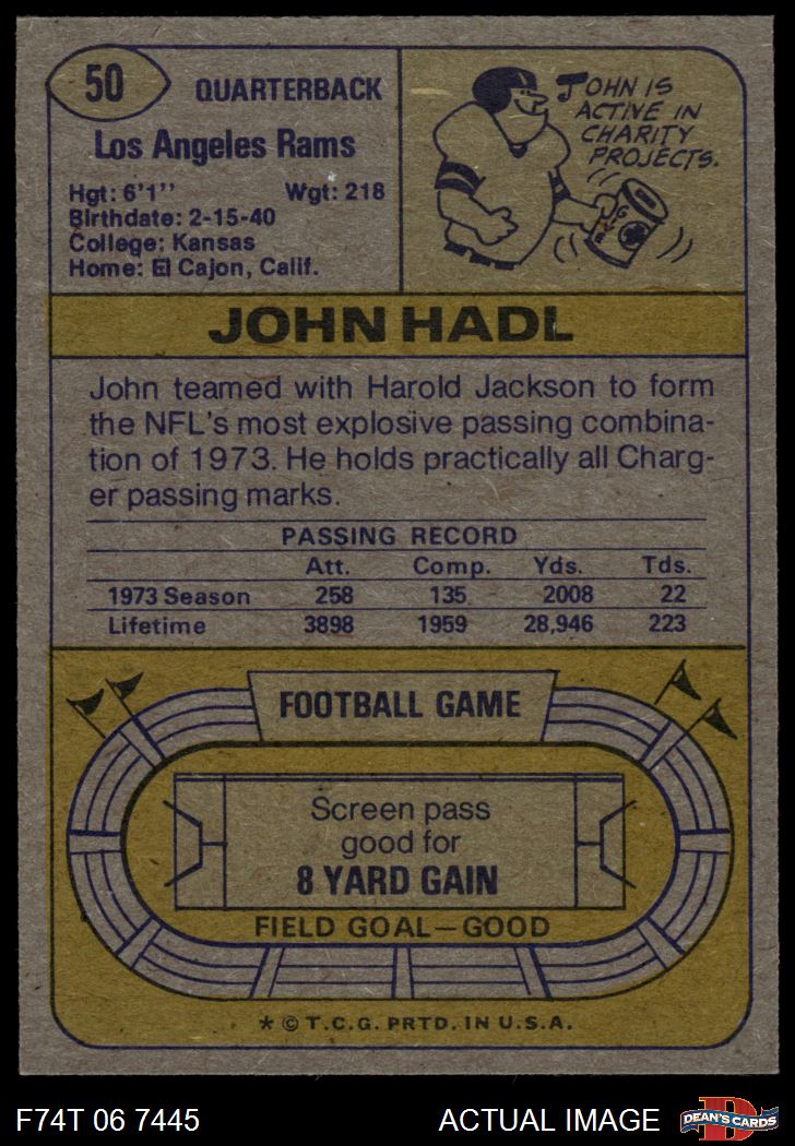 1974 Topps #50 ONE John Hadl 7 - NM