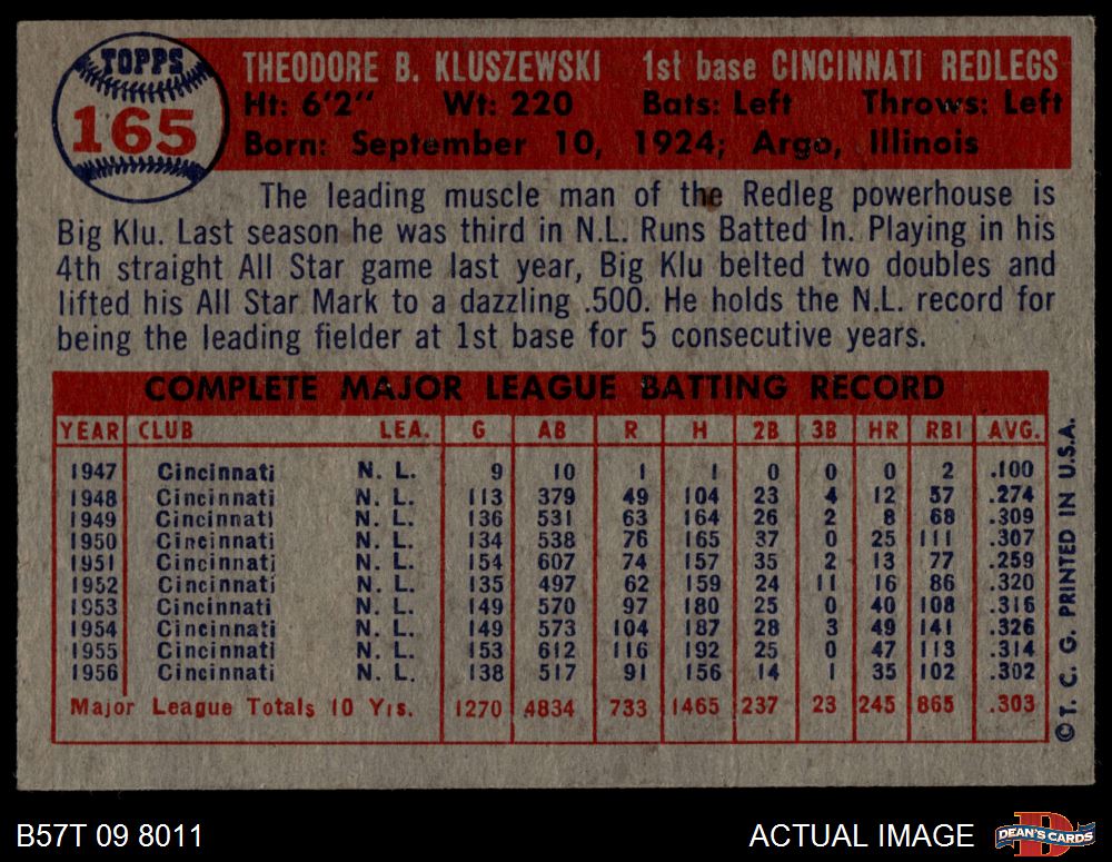 1957 Topps #165 Ted Kluszewski 4 - VG/EX