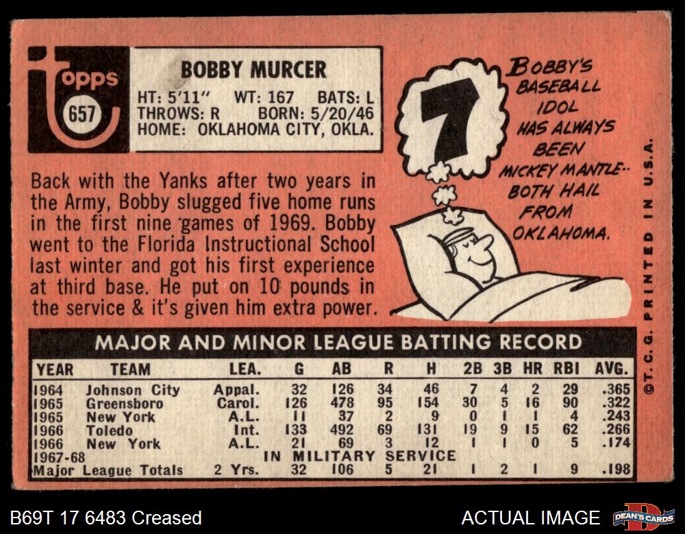 1969 Topps #657 Bobby Murcer 1.5 - FAIR