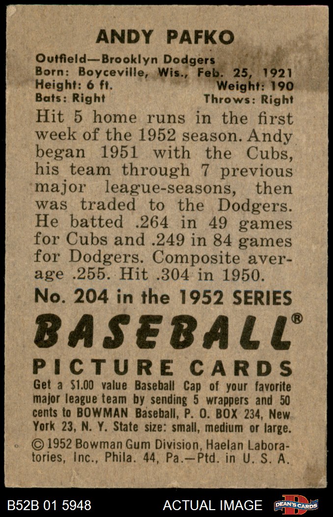 1952 Bowman Baseball Cards (892 available)1952 Bowman Dodgers (96 available)