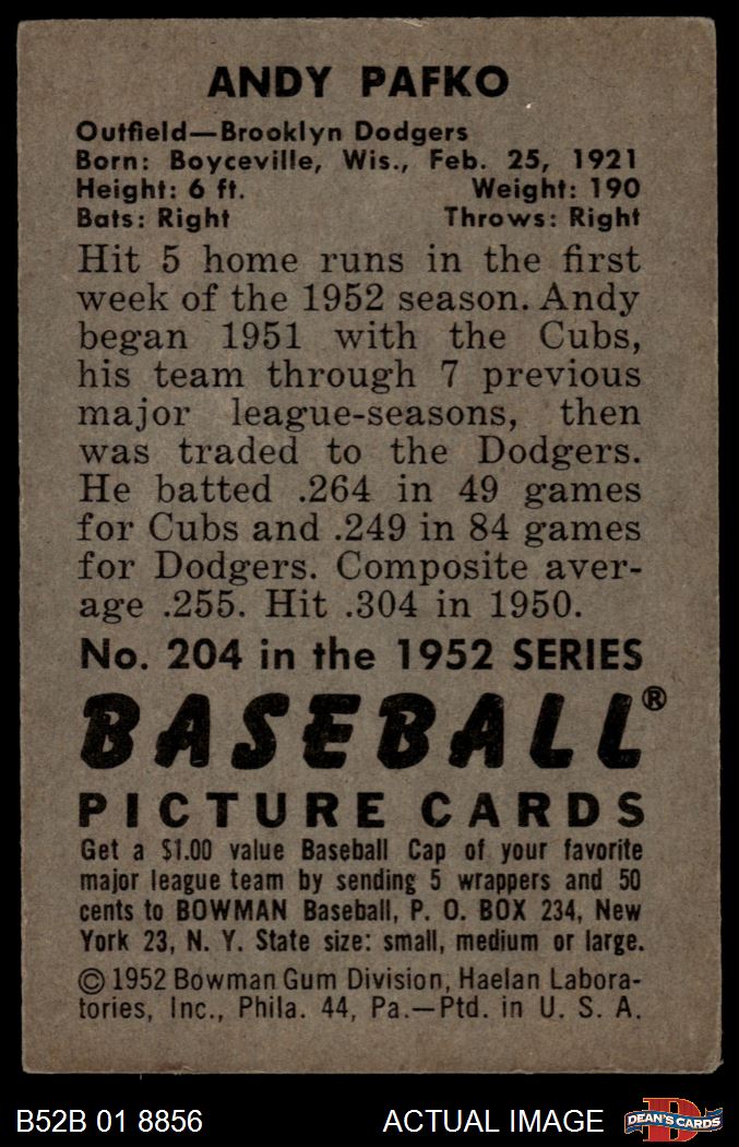 1952 Bowman #204 Andy Pafko 4 - VG/EX