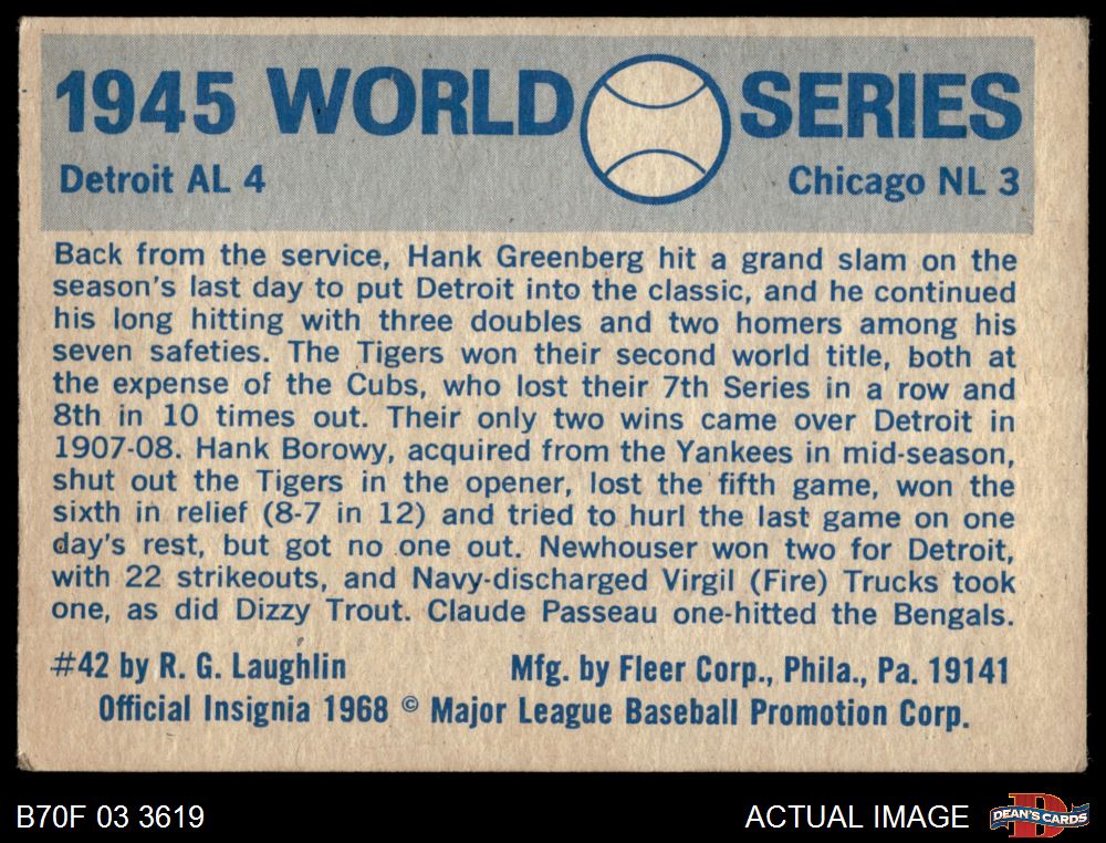 1970 Fleer World Series #42 - Hank Greenberg 1945 Tigers vs. Cubs 3 - VG