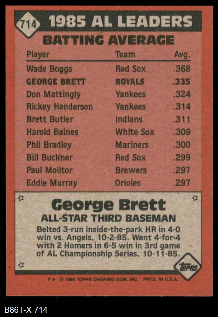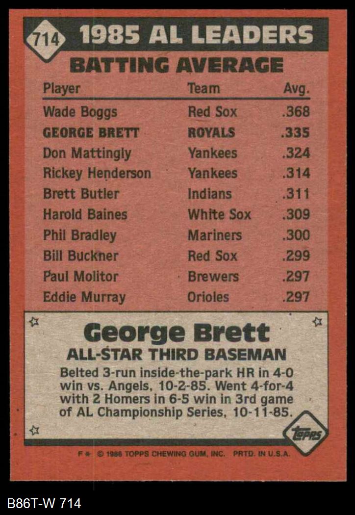 1986 Topps #714 - George Brett All-Star 8 - NM/MT