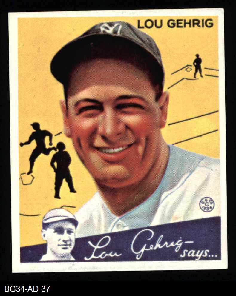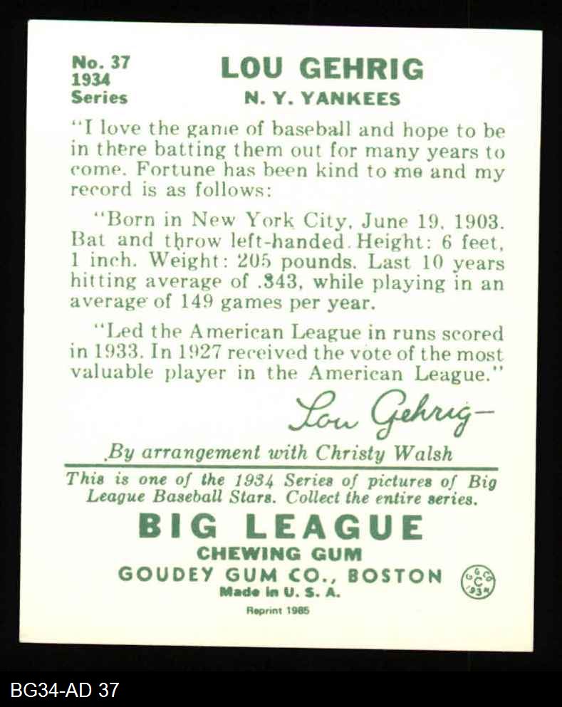 1934 Goudey Reprint #37 Lou Gehrig 8 - NM/MT