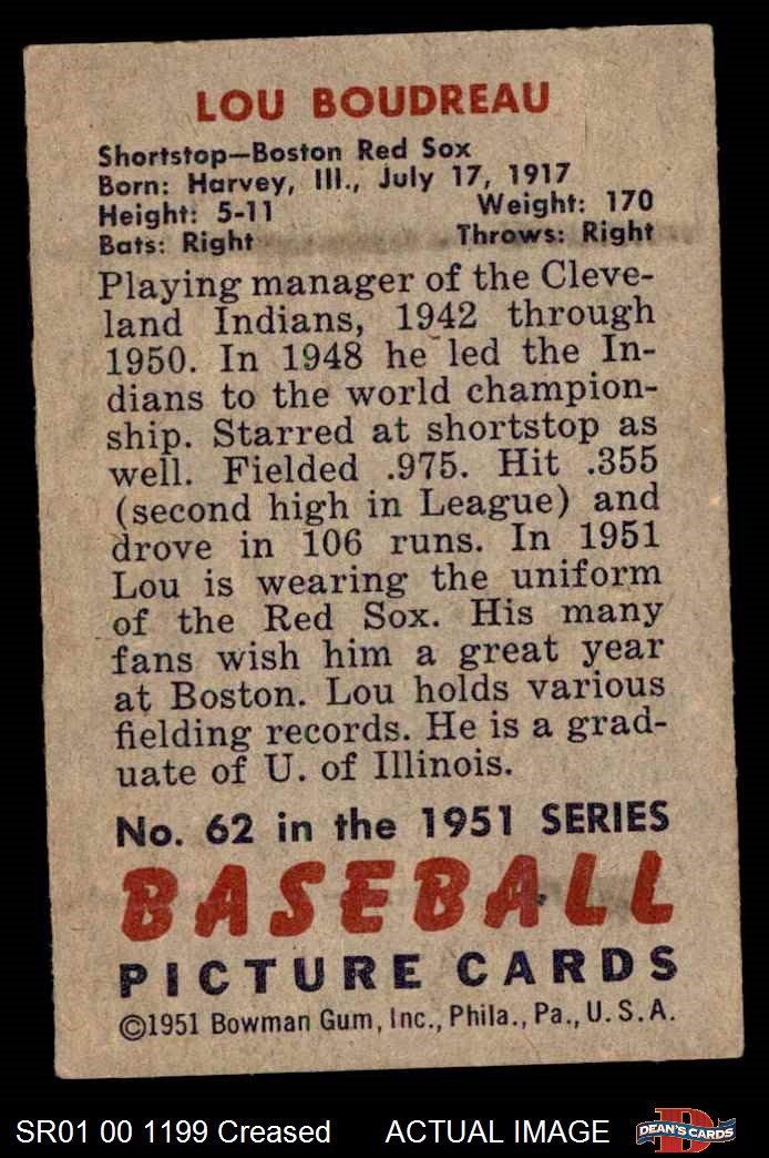 1951 Bowman #62 Lou Boudreau 3 - VG