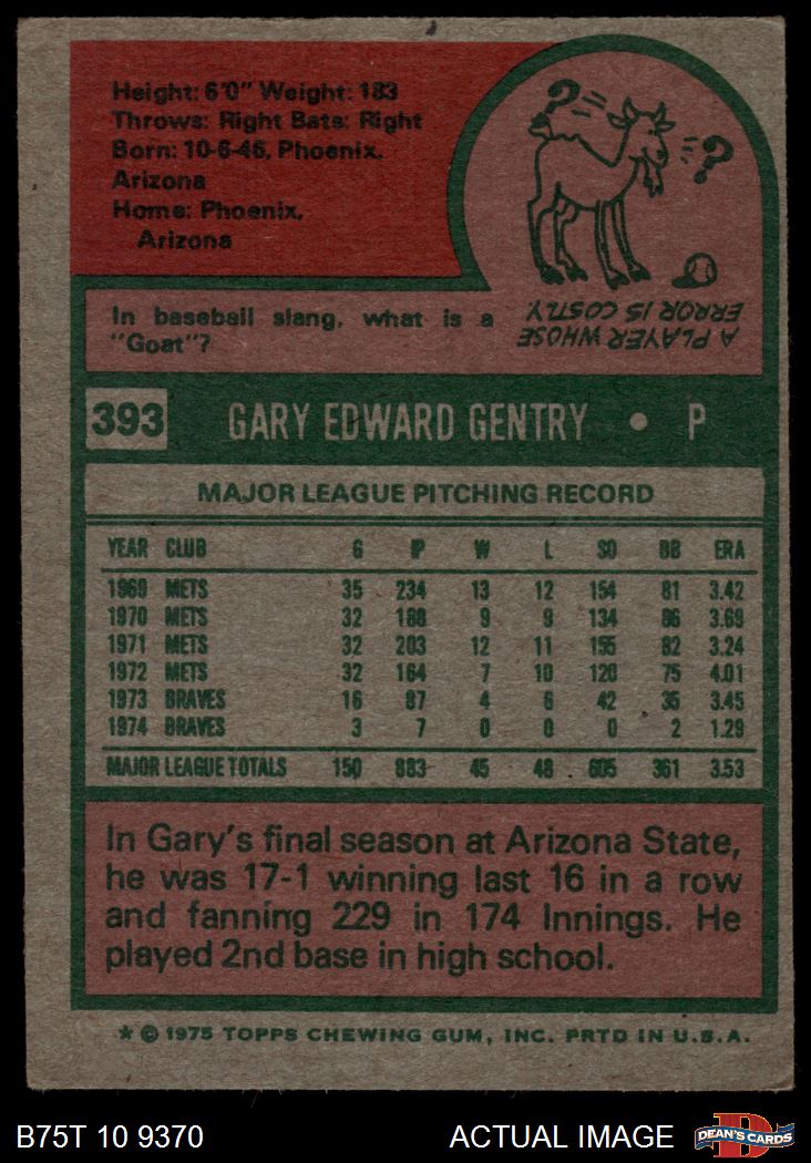 1975 Topps #393 Gary Gentry 3 - VG