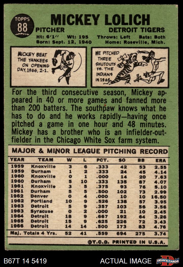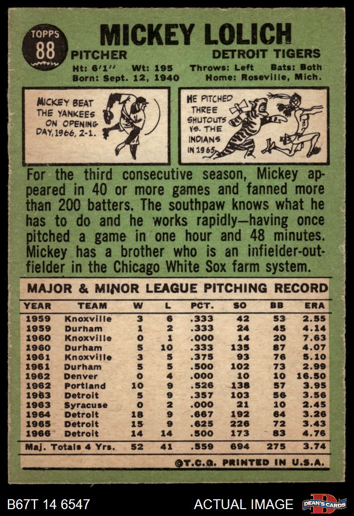 1967 Topps #88 Mickey Lolich 4 - VG/EX
