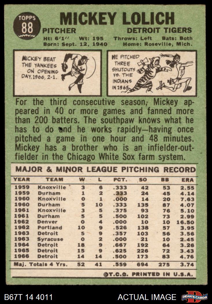 1967 Topps #88 Mickey Lolich 4.5 - VG/EX+