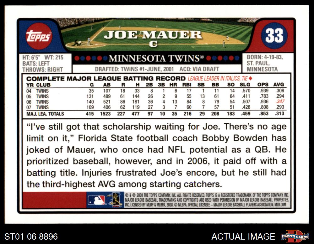 2008 Topps #33 Joe Mauer 8 - NM/MT