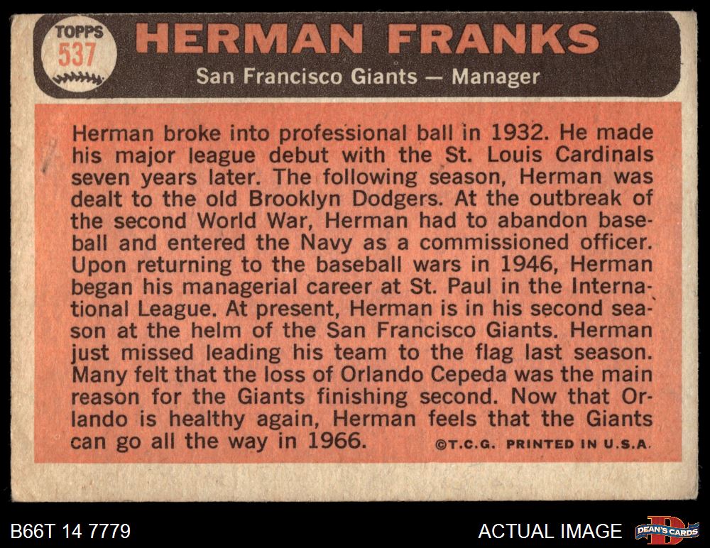 1966 Topps #537 Herman Franks 1.5 - FAIR