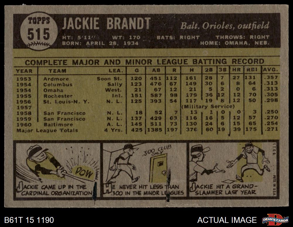 1961 Topps #515 Jackie Brandt 2 - GOOD