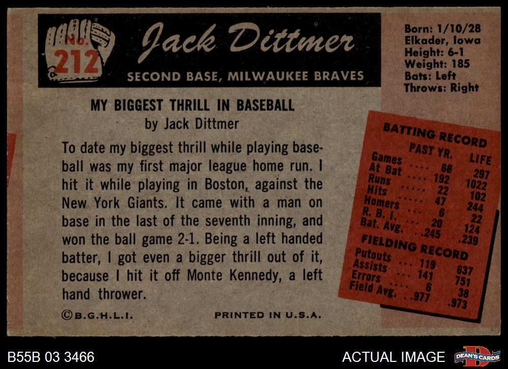 1955 Bowman #212 Jack Dittmer 3 - VG