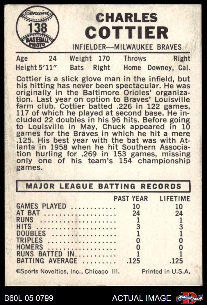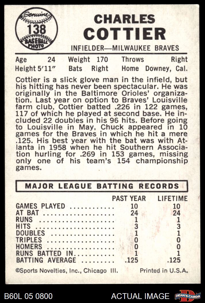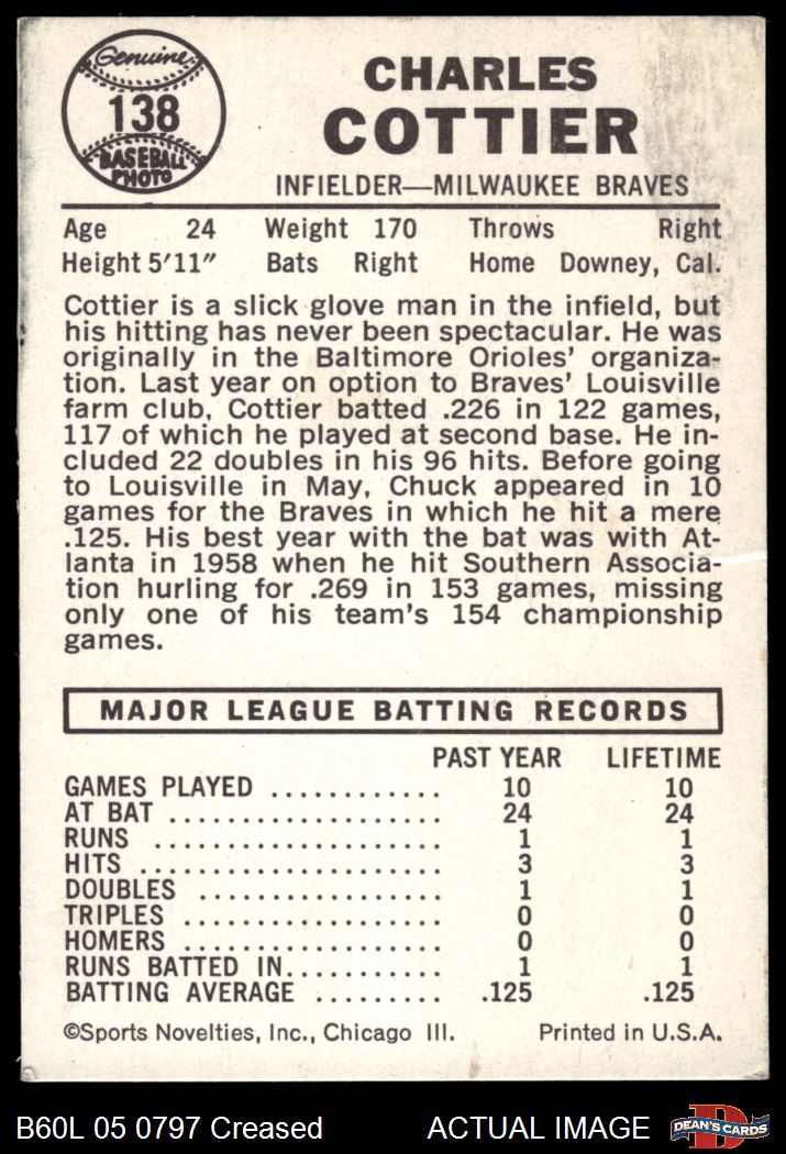 1960 Leaf #138 Chuck Cottier 2 - GOOD