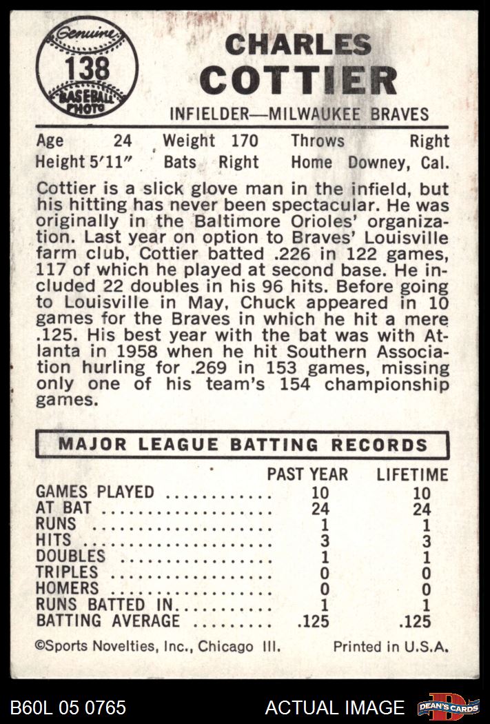 1960 Leaf #138 Chuck Cottier 4.5 - VG/EX+