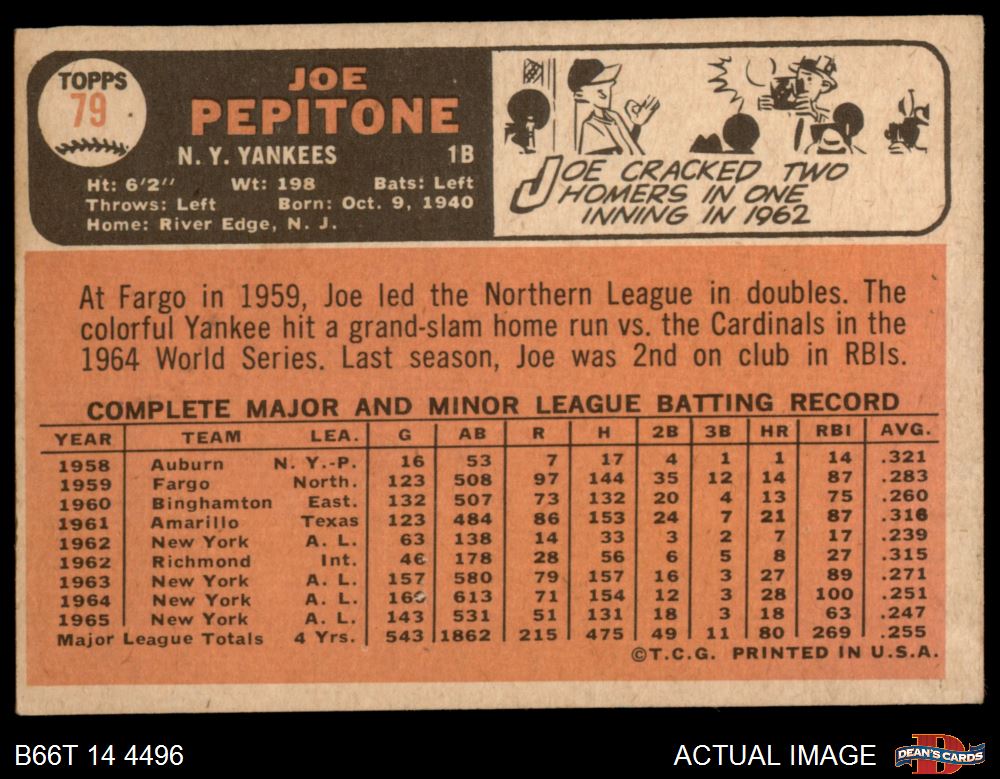 1966 Topps #79 Joe Pepitone 3 - VG