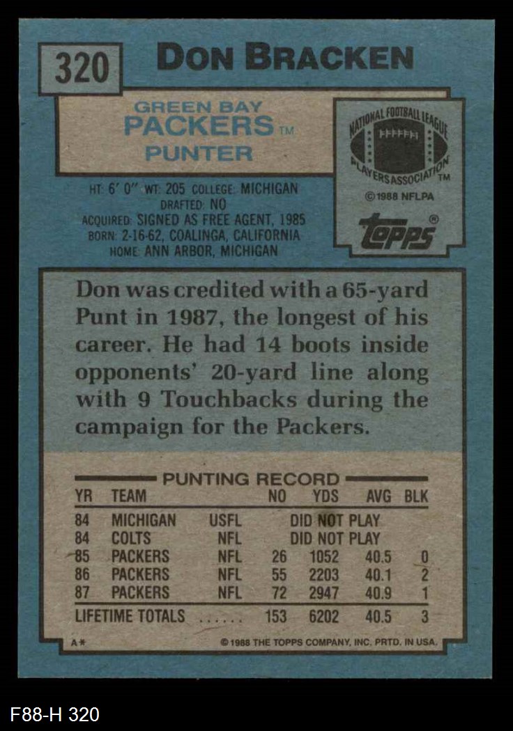 1988 Topps #320 Don Bracken 8 - NM/MT