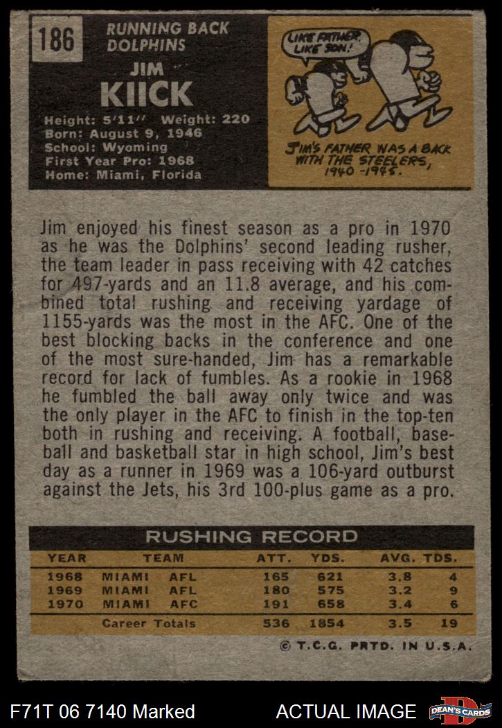 1971 Topps #186 Jim Kiick Front Thumbnail