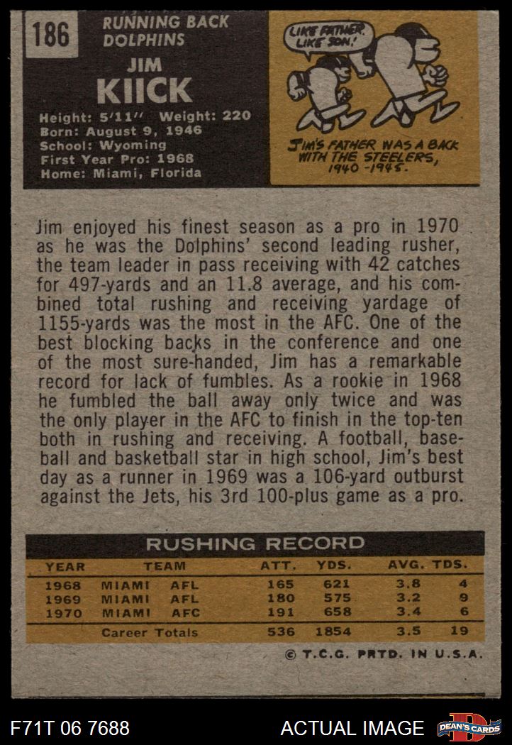 1971 Topps #186 Jim Kiick 4 - VG/EX