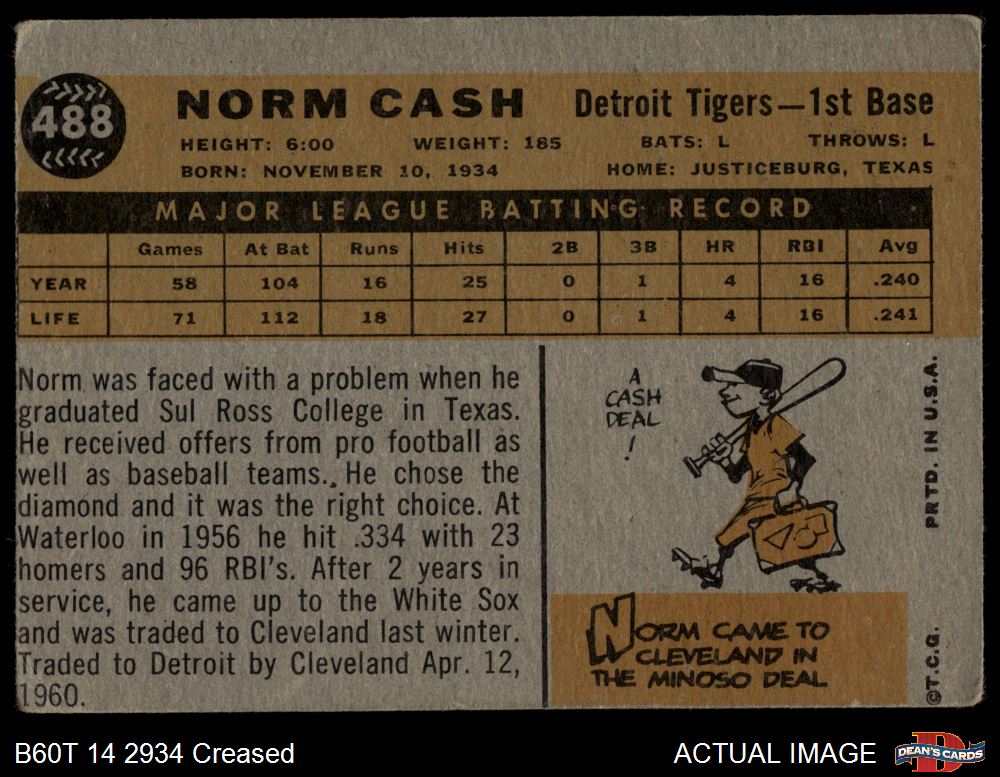 1960 Topps #488 Norm Cash 1.5 - FAIR