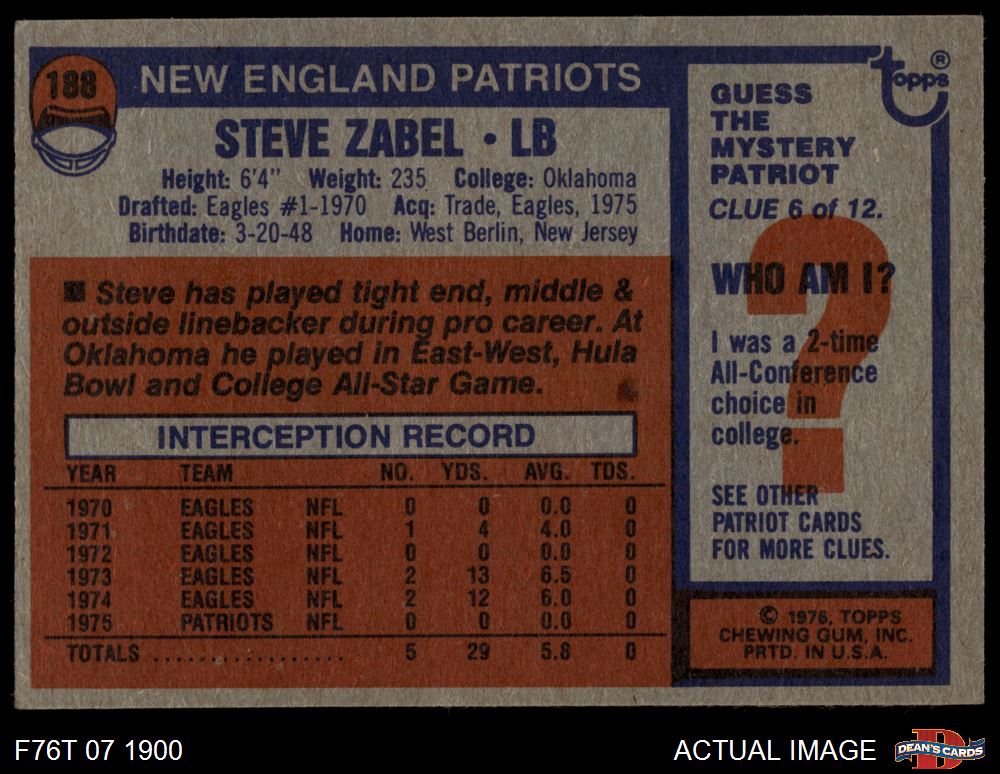 1976 Topps #188 Steve Zabel 3.5 - VG+