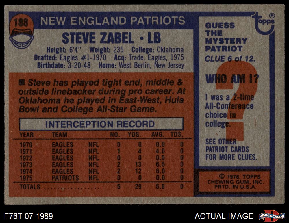 1976 Topps #188 Steve Zabel 6 - EX/MT