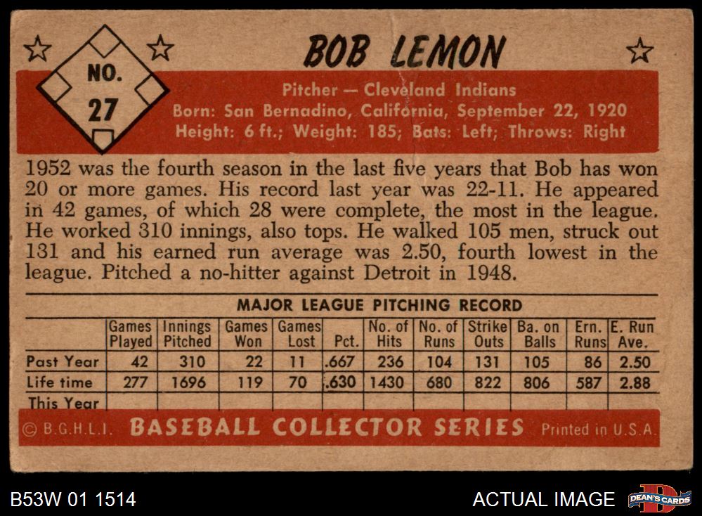1953 Bowman B&W #27 Bob Lemon 1.5 - FAIR