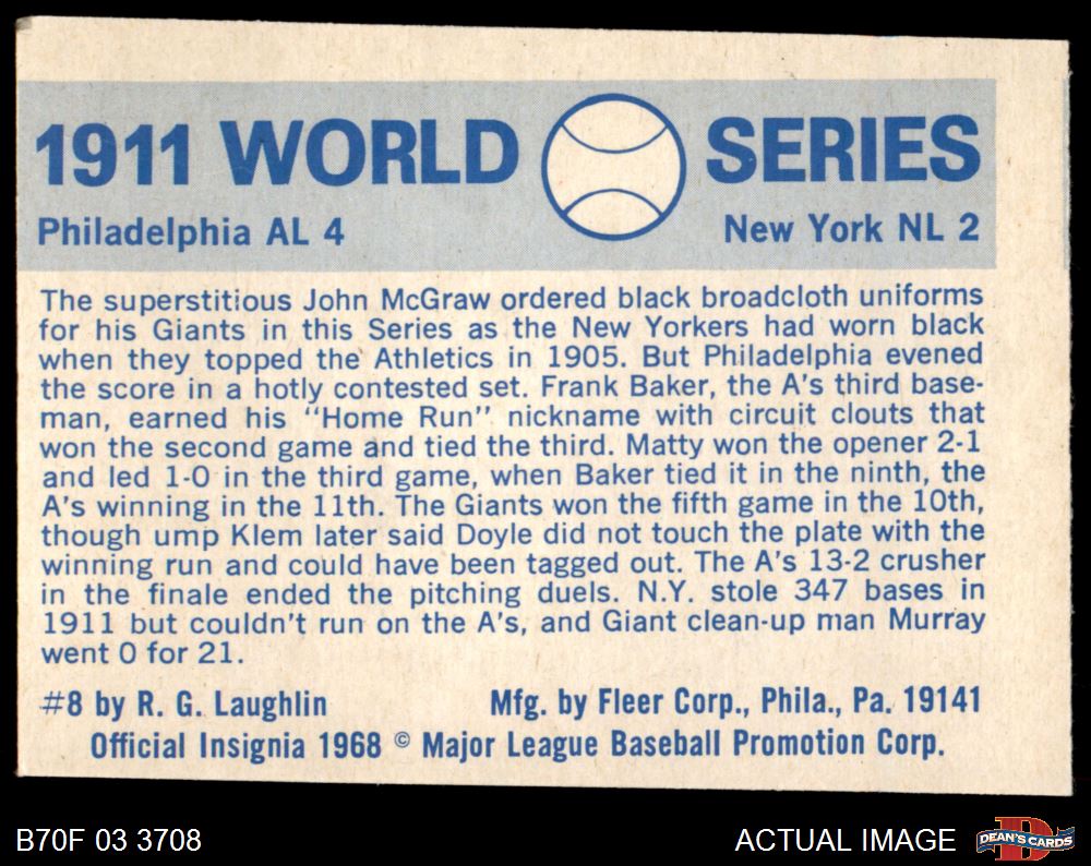 1970 Fleer World Series #8 - John McGraw 1911 A's vs. Giants 2 - GOOD