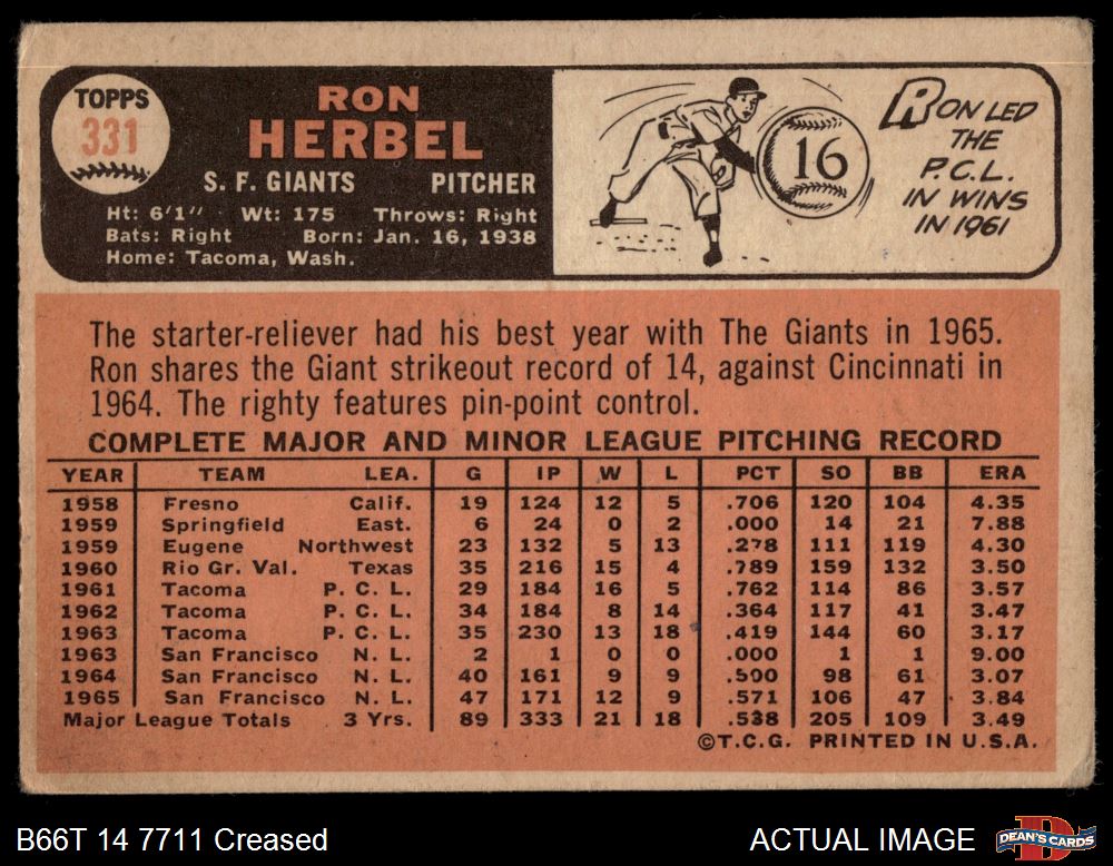 1966 Topps #331 Ron Herbel Front Thumbnail