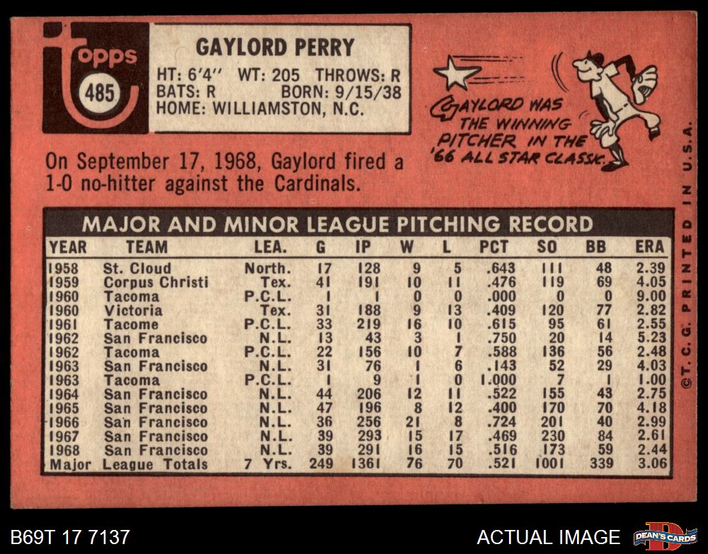 1969 Topps #485 YN Gaylord Perry