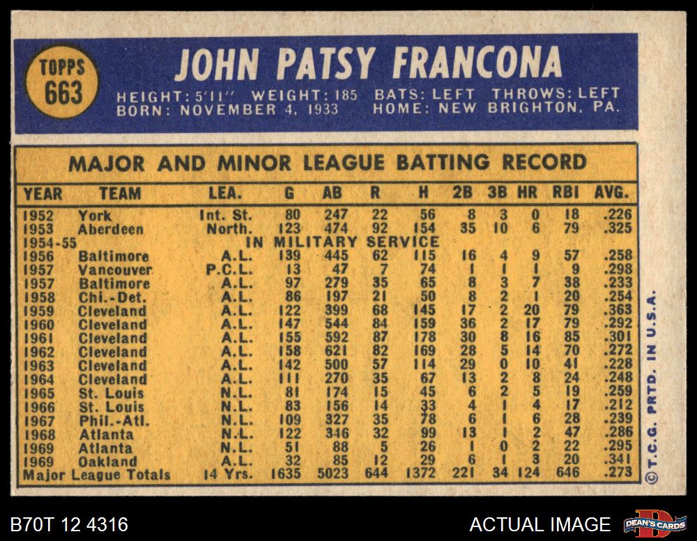 1970 Topps #663 Tito Francona 5 - EX