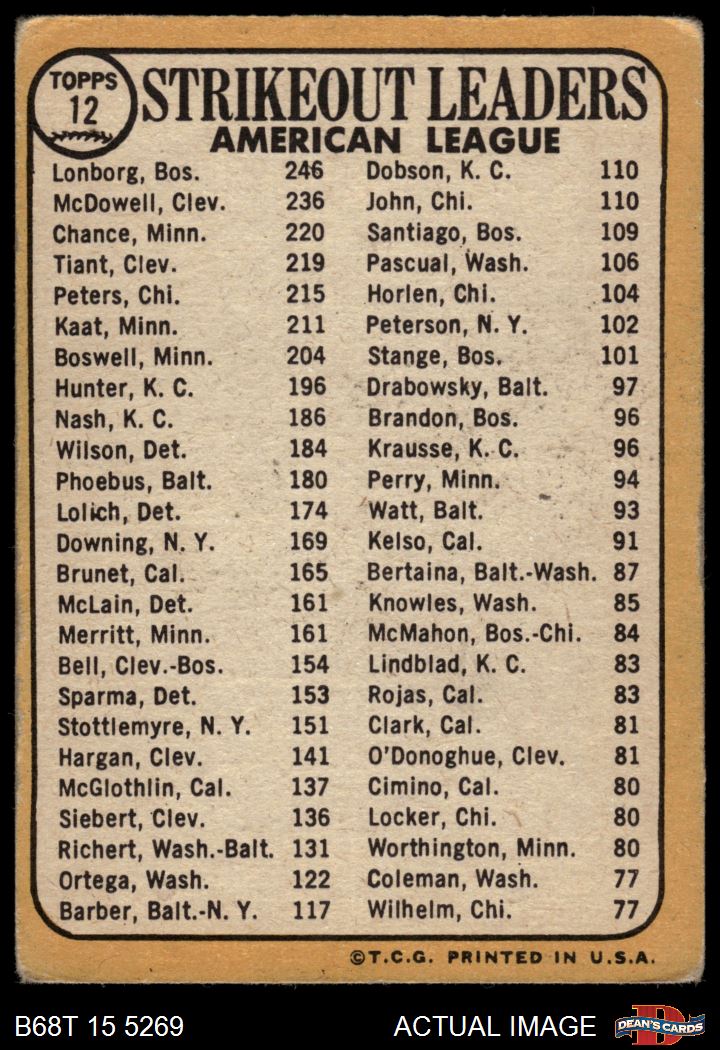 1968 Topps Baseball Cards (14,898 available)1968 Topps Red Sox / Indians / Twins (48 available)