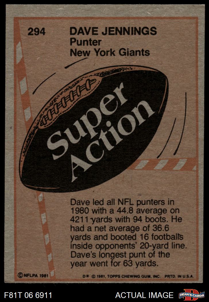 1981 Topps #294 - Dave Jennings Super Action 4 - VG/EX