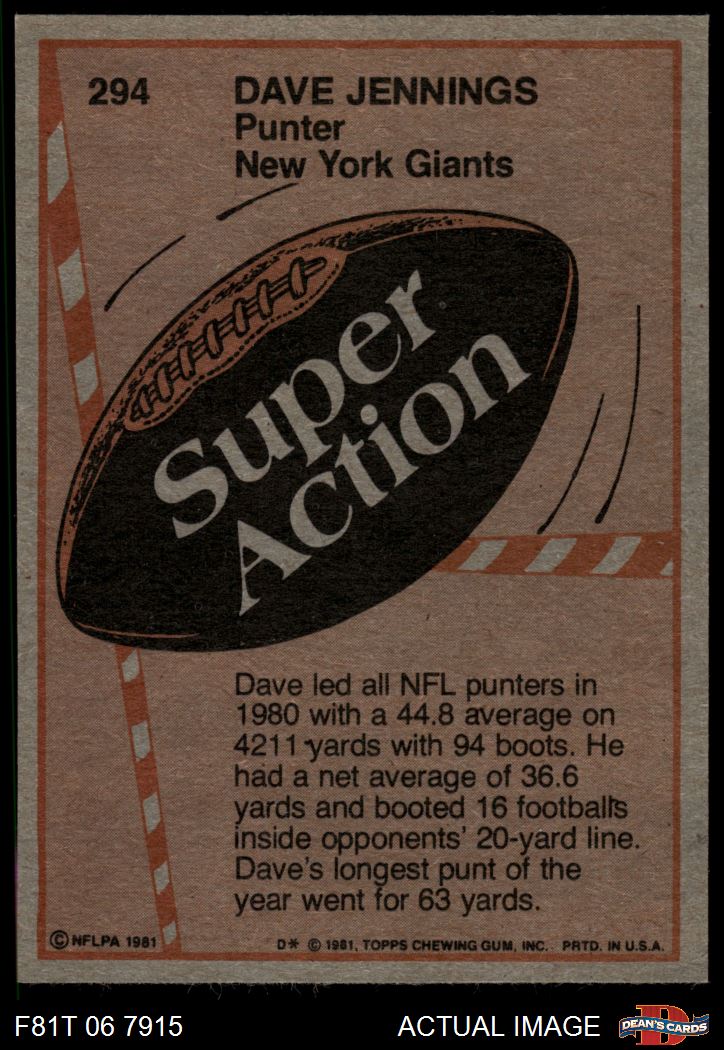 1981 Topps #294 - Dave Jennings Super Action 6 - EX/MT