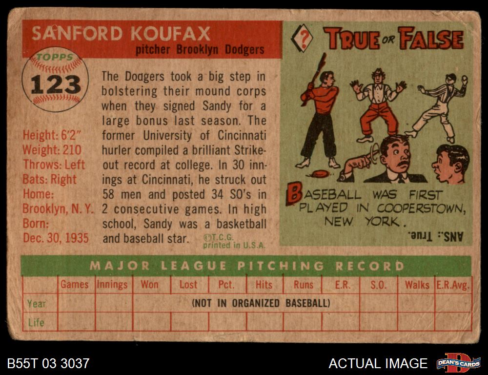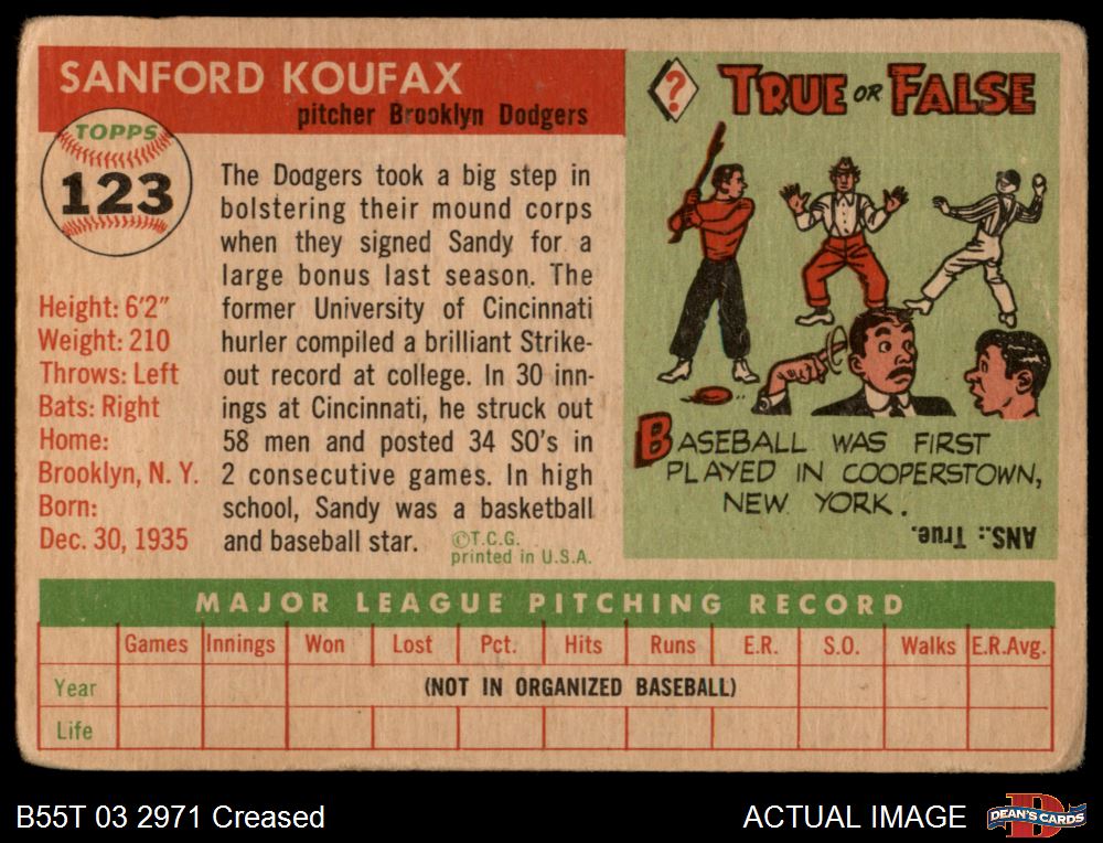 1955 Topps #123 Sandy Koufax 1 - POOR