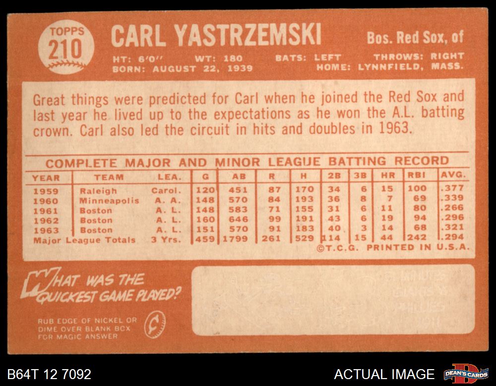 1964 Topps #210 Carl Yastrzemski 3.5 - VG+