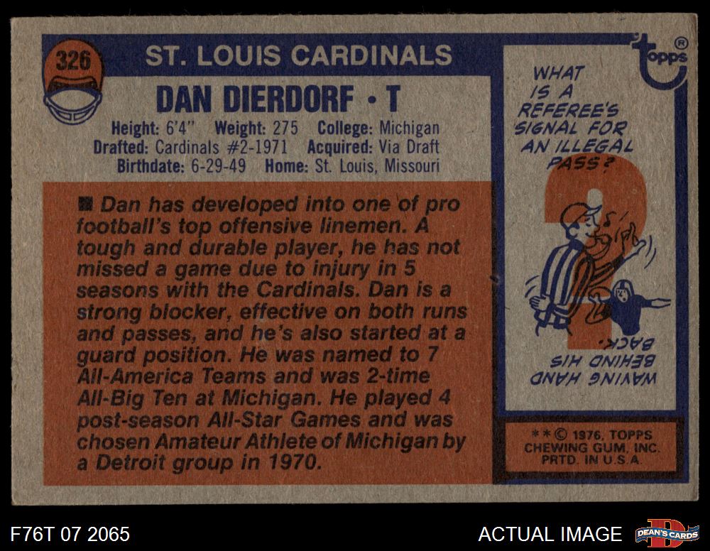 1976 Topps #326 Dan Dierdorf 2 - GOOD